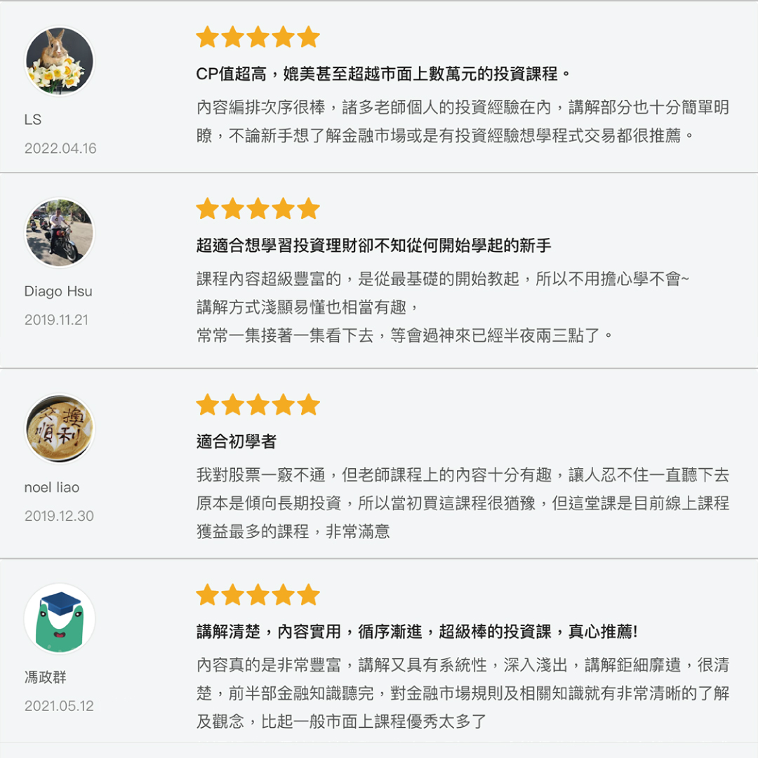 .如果你沒有交易經驗:這堂課將帶來與實際交易最相關的重點金融知識,幫助你有效率的搞懂金融市場交易。